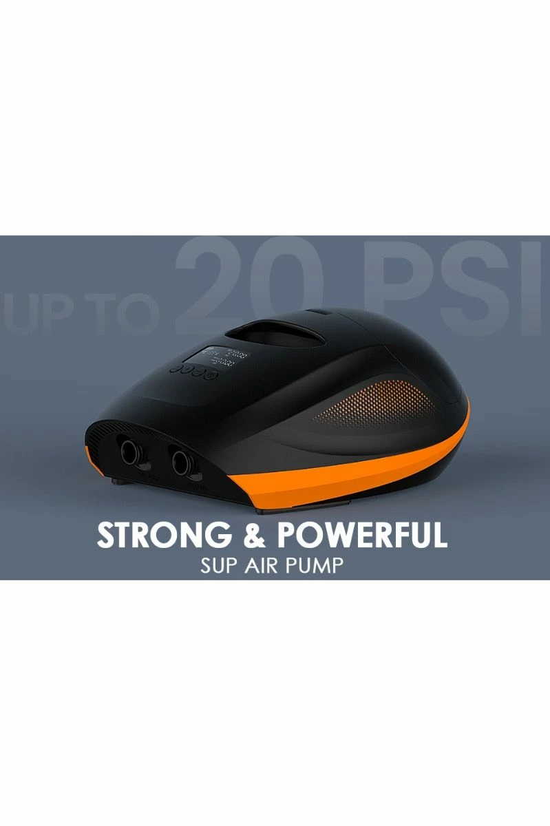 Why is this pump slower? Inflating a paddleboard to 20 psi requires a significant amount of pressure through the pistons. To avoid burning out the pistons within the motor, the pump inflates slowly, allowing for the higher pressure while ensuring the pump’s durability.